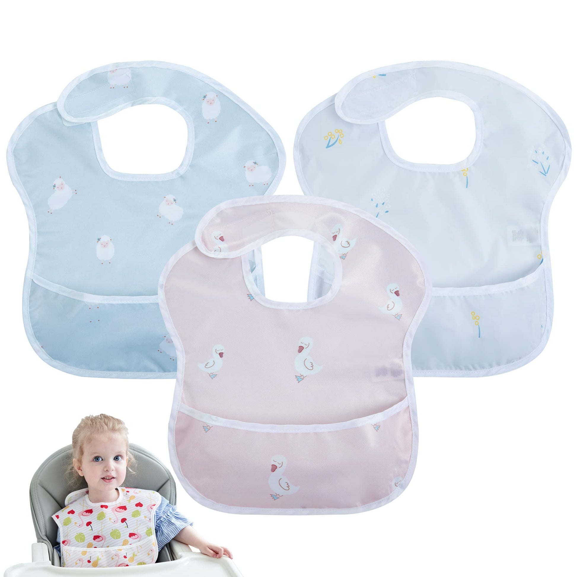 - STORAGE POCKET-The bib can protect baby's clothes in daily life and make them easy for parents to wash. Besides, the bibs can fold up perfectly into a pocket-sized bag which is originally built for easy transport.